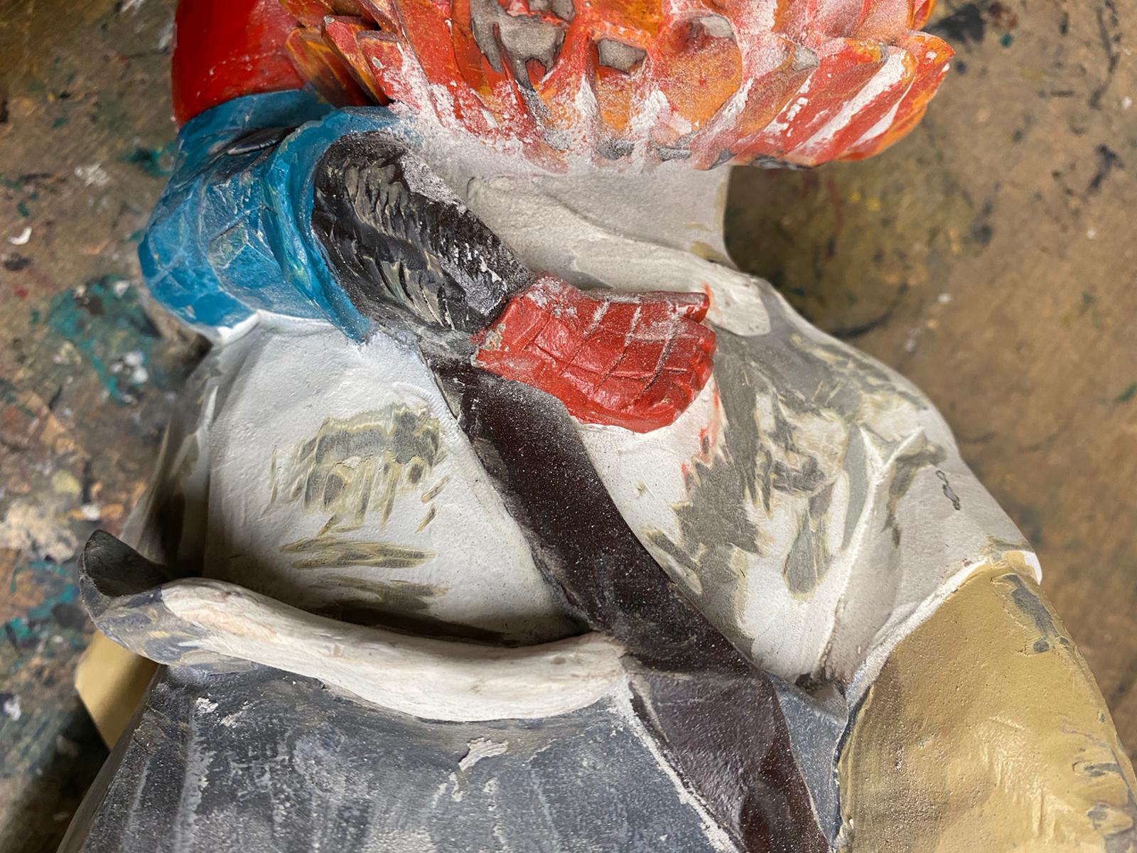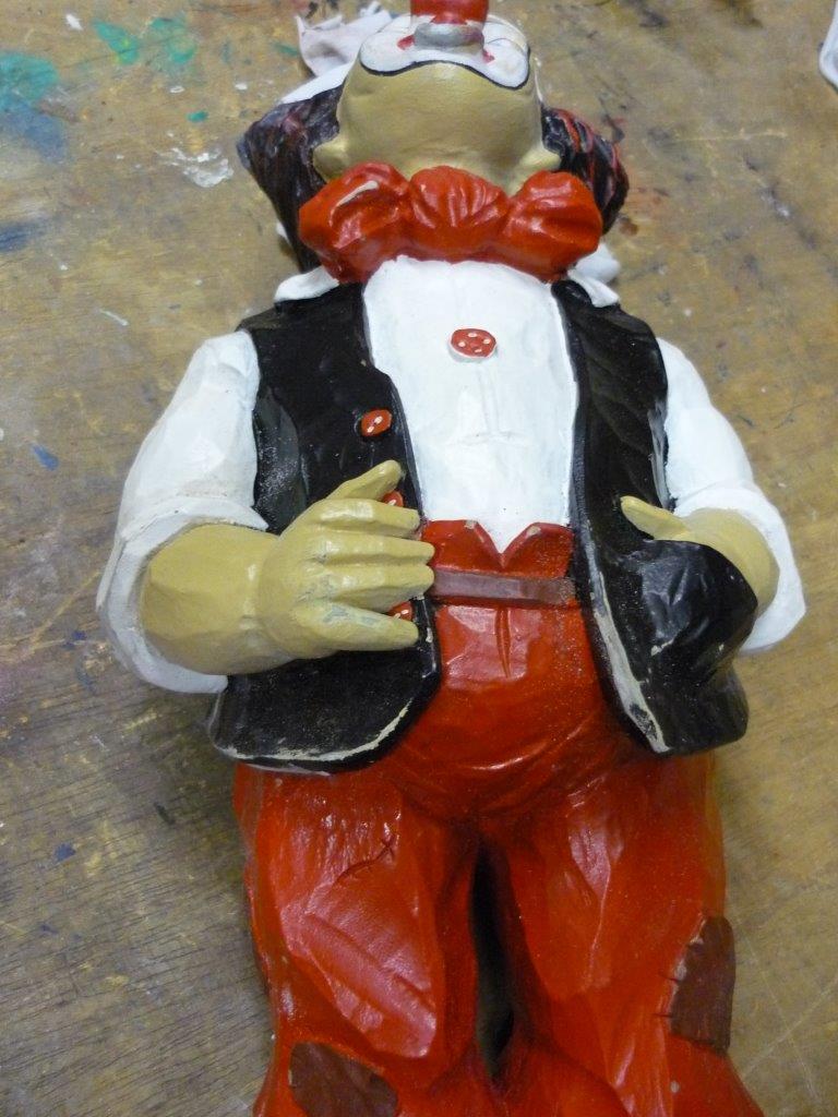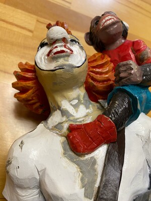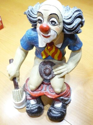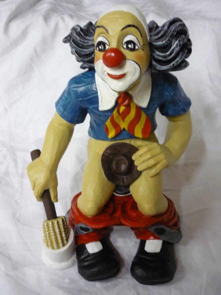 Mein Sammlerfreund, Holger Göttert, arbeitet auch bis zur Unkenntlichkeit beschädigte Clowns komplett wieder auf. In oft mühevoller Kleinarbeit modelliert er Kleinteile, Finger, Nasen, ja komplette Gesichter wieder nach. Abgebrochene Teile werden ebenfalls repariert und angeklebt. Dabei sind viele Arbeitsprozesse zwei- bis dreimal notwendig. Bei der Farbgebung ist ebenfalls handwerkliches Geschick gefragt. Farben müssen neu zusammengemischt werden - bis die ehemals original vorhandene Farbgebung erreicht ist. Auch werden manchmal restaurierte Clowns mit völlig neu zusammengestellten Farbkombinationen versehen.